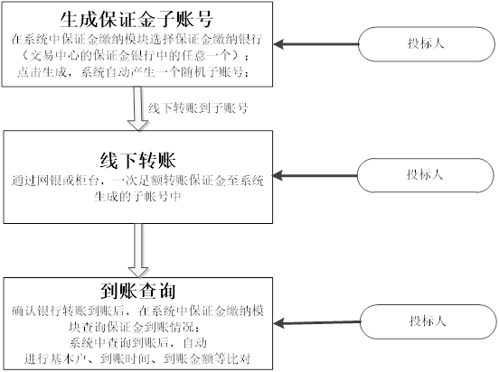 响应方,即投标人、竞买人等公共资源交易响应方,在保证金缴纳环节主要有三个步骤,一是生成虚拟子账号,二是缴纳保证金,三是查询到账情况。基本流程如下: