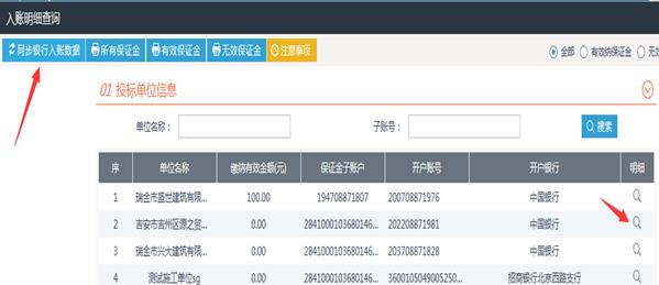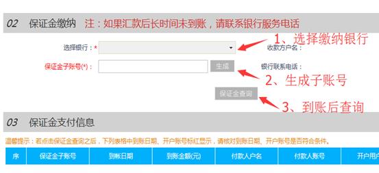 第三步:在完成上述两步之后,在收款银行到账后,可以在系统中保证金缴纳模块点击“查询”按钮,获取到账信息。