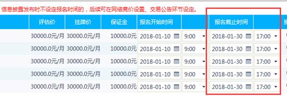 第二步:在信息披露发布环节设定保证金缴纳截止时间,报名截止时间即设定的保证金缴纳截止时间。