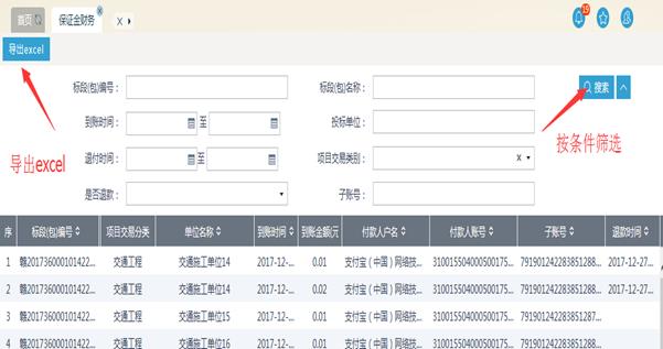 1.中心财务可在保证金财务模块,按条件筛选(项目名称、到账时间、行业类型、到账银行等),并excel与银行回单进行对账。