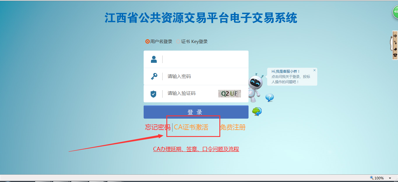 1)您可以登录交易主体登录页面,点击“CA证书激活”按钮;